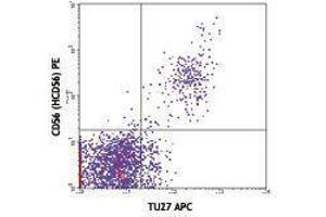 CD122 is a 70-75 kD type I transmembrane glycoprotein and member of the Ig superfamily. It is IL-2 receptor β chain also known as IL-2Rβ, which is also shared by the IL-15 receptor. CD122 is constitutively expressed by NK cells and at lower levels by a subset of T cells. Its expression is upregulated upon activation. The IL-2Rβ chain can combine with either the common γ subunit (γc, CD132) alone or with the γc subunit and the IL-2Rα subunit (CD25) to generate intermediate or high affinity IL-2 receptor complexes, respectively. CD122 expression levels can be upregulated by activation.