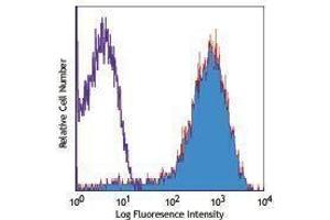 CD49d is a 150 kD α integrin chain known as α4 integrin or VLA-4 α chain. It forms a heterodimer with either integrin β1 (α4β1, VLA-4) or β7 (α4β7). CD49d is expressed broadly on T lymphocytes, B lymphocytes, monocytes, thymocytes, eosinophils, basophils, mast cells, NK cells, dendritic cells, and some non-hematopoietic cells, but not on normal red blood cells, platelets or neutrophils. VLA-4 binds to VCAM-1 (CD106) and fibronectin. α4β7 is the receptor for VCAM-1 and MAdCAM-1. CD49d participates in mononuclear cell trafficking to endothelial sites of inflammation and has roles in cell-cell interactions and cell adhesion to extracellular matrices. CD49d is involved in lymphocyte migration, T cell activation, and hematopoietic stem cell differentiation. CD49d is a marker to isolate pure populations of Treg cells due to its absence on Foxp3+ cells.