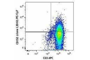 CD152, also known as Cytotoxic T-Lymphocyte Antigen 4 (CTLA-4), is a 33 kD member of the immunoglobulin superfamily. It is transiently expressed on activated T cells. CTLA4 is expressed on the surface of helper T cells and transmits an inhibitory signal to T cells. Regulatory T cells express high levels of CTLA-4. CTLA-4 (CD152) is similar to CD28 in amino acid sequence, structure, and genomic organization. Whereas CD28 delivers a costimulatory signal in T cell activation, CTLA-4 negatively regulates cell-mediated immune responses through interaction with CD80 (B7-1) and CD86 (B7-2) present on antigen presenting cells (APC). CTLA-4 is thought to play a role in the induction and maintenance of immunological tolerance as well as the development of protective immunity and thymocyte regulation. Mutations in the CTLA-4 gene have been associated with various autoimmune diseases, such as systemic lupus erythematosus, insulin-dependent diabetes mellitus, and other autoimmune diseases. A transcript of the CTLA-4 gene that may represent a native soluble form of CTLA-4 (sCTLA-4) showed that eleven of twenty patients with autoimmune thyroid disease (ATD) had a high concentration of sCTLA-4, whereas only 1 of 30 apparently healthy volunteers contained measurable levels. sCTLA-4 immunoreactivity was inhibited by its binding to B7.1, suggesting that sCTLA-4 is a functional receptor. sCTLA4 also plays a role in the initial immune response to infection of immune cells by HIV, along with the CD-1 pathway and others.