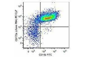 CD172a, also known as SIRPα, is a type I transmembrane protein with one V-set Ig-like and two C-set Ig-like domains in the extracellular portion, and two ITIM motifs and a proline-rich region in the cytoplasmic tail. CD172a is expressed by monocytes, macrophages, myeloid cells, and neuronal tissue. The phosphorylation of SIRPα ITIMs induces the recruitment and activation of the tyrosine phosphatases PTPN6 and PTPN11, resulting in the negative regulation of several biological processes. The ligands of CD172a are CD47, SP-A, and SP-D.