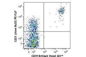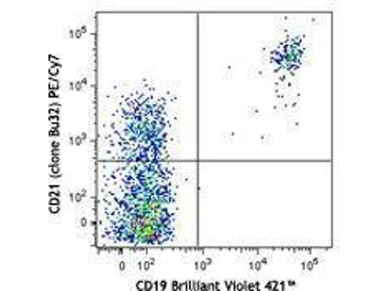CD21 is a 145 kD transmembrane protein also known as complement C3d receptor (C3dR), complement receptor 2 (CR2), and Epstein-Barr virus receptor. CD21 is expressed on B cells, follicular dendritic cells, subsets of normal thymocytes and T cells, and some epithelial cells. CD21 is the receptor used by Epstein-Barr virus to infect B cells and is also the complement receptor for C3d. CD21 has also been shown to interact with a number of proteins, including CD23, CD19, annexin VI, CD81, iC3b, complement receptor 1 (CR1, CD35), and interferon-alpha 1 (IFN-α1).