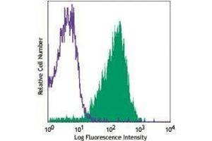 CD49d is a 150 kD α integrin chain known as α4 integrin or VLA-4 α chain. It forms a heterodimer with either integrin β1 (α4β1, VLA-4) or β7 (α4β7). CD49d is expressed broadly on T lymphocytes, B lymphocytes, monocytes, thymocytes, eosinophils, basophils, mast cells, NK cells, dendritic cells, and some non-hematopoietic cells, but not on normal red blood cells, platelets or neutrophils. VLA-4 binds to VCAM-1 (CD106) and fibronectin. α4β7 is the receptor for VCAM-1 and MAdCAM-1. CD49d participates in mononuclear cell trafficking to endothelial sites of inflammation and has roles in cell-cell interactions and cell adhesion to extracellular matrices. CD49d is involved in lymphocyte migration, T cell activation, and hematopoietic stem cell differentiation. CD49d is a marker to isolate pure populations of Treg cells due to its absence on Foxp3+ cells.