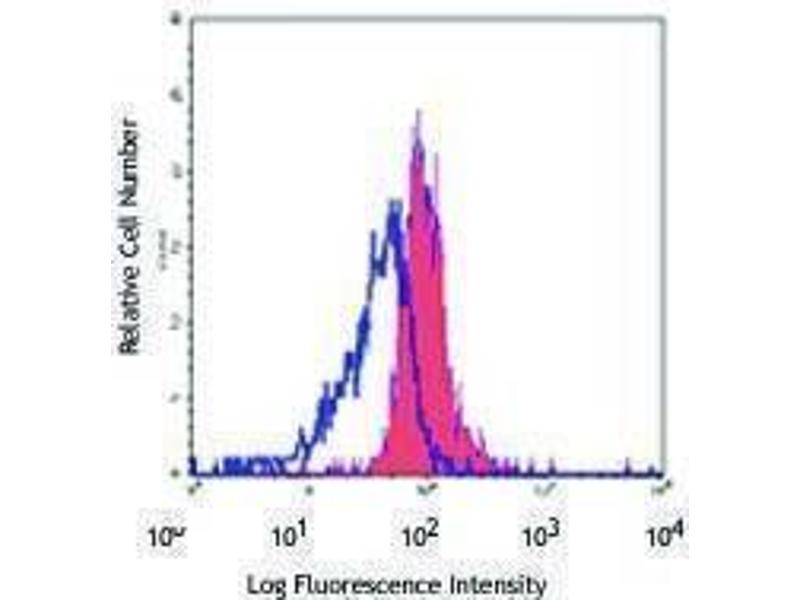 CD86 is an 80 kD immunoglobulin superfamily member also known as B7-2, B70, and Ly-58. CD86 is expressed on activated B and T cells, monocytes/macrophages, dendritic cells, and astrocytes. CD86, along with CD80, is the ligand of CD28 and CD152 (CTLA-4). CD86 is expressed earlier in the immune response than CD80. CD86 has also been shown to be involved in immunoglobulin class-switching and triggering of NK cell-mediated cytotoxicity. CD86 binds to CD28 to transduce costimulatory signals for T cell activation, proliferation, and cytokine production. CD86 can bind to CD152 as well, also known as CTLA-4, to deliver an inhibitory signal to T cells.