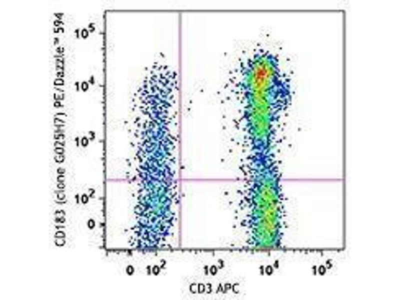 Der PE-Dazzle™ 594-konjugierte Maus Monoklonal anti-CXCR3 Antikörper (Klon G025H7) (ABIN2659661) detektiert spezifisch CXCR3 in FACS.