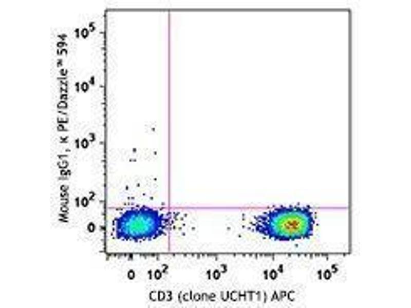 The antibody was purified by affinity chromatography and conjugated with PE/Dazzle™ 594 under optimal conditions. The solution is free of unconjugated PE/Dazzle™ 594 and unconjugated antibody.