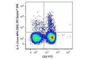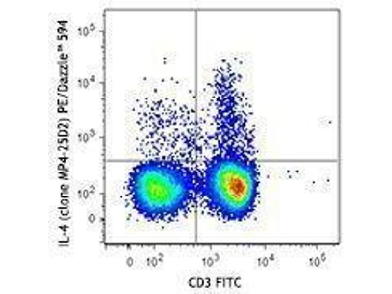 IL-4 is a pleiotropic cytokine that is produced by activated T cells, mast cells, and basophils. IL-4 elicits many different biological responses but has two dominant functions. The first is regulating differentiation of naive CD4+ T cell to the Th2 type. Th2 cells produce IL-4, IL-5, IL-10, and IL-13, which tend to favor a humoral immune response while suppressing a cell-mediated immune response controlled by Th1 cells. The second is regulating IgE and IgG1 production by B cells.