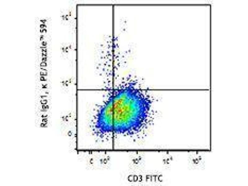 The antibody was purified by affinity chromatography and conjugated with PE/Dazzle™ 594 under optimal conditions. The solution is free of unconjugated PE/Dazzle™ 594 and unconjugated antibody.