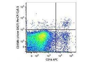 CD158b is expressed on natural killer cells and a subset of T cells. It is a member of the immunoglobulin superfamily containing two immunoglobulin C2-type domains. Both variants and alternative isoforms of CD158b have been reported. The interaction of CD158b with specific HLA-C antigens on a target cell (HLA-Cw1, HLA-Cw3, HLA-Cw7 alleles, for example) inhibits cytotoxicity and prevents target cell lysis and death. The interactions between KIR and MHC class I are thought to be important in NK cell and T cell regulation following antigen stimulation. The absence of ligands for KIRs may lower the threshold for activation through activating receptors and increase inflammation and susceptibility to autoimmune disease.