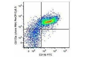 CD172a, also known as SIRPα, is a type I transmembrane protein with one V-set Ig-like and two C-set Ig-like domains in the extracellular portion, and two ITIM motifs and a proline-rich region in the cytoplasmic tail. CD172a is expressed by monocytes, macrophages, myeloid cells, and neuronal tissue. The phosphorylation of SIRPα ITIMs induces the recruitment and activation of the tyrosine phosphatases PTPN6 and PTPN11, resulting in the negative regulation of several biological processes. The ligands of CD172a are CD47, SP-A, and SP-D.