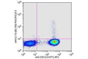 IL-17A is the founding member of the IL-17 family, a group of six structurally related pro-inflammatory cytokines. IL-17A, secreted by activated CD4+ Th17 cell subpopulation, elicits multiple biological activities on a variety of cells including: the induction of IL-6, IL-8, G-CSF, and PGE2 production in epithelial, endothelial or fibroblasts, the enhancement of surface expression of ICAM-1 in fibroblasts, activation of NF-κB and costimulation of T cell proliferation. Recent studies demonstrated that, in mice, activated IL-17-secreting CD4+ helper T cells (Th17 cells) mediate an autoimmune arthritis that clinically and immunologically resembles rheumatoid arthritis (RA). Human IL-17A shows 63 % , 63 %, and 72 % amino acid sequence identity to rat IL-17A, mouse IL-17A, and a protein encoded by the ORF13 gene of herpesvirus Saimiri (HVS), respectively.
