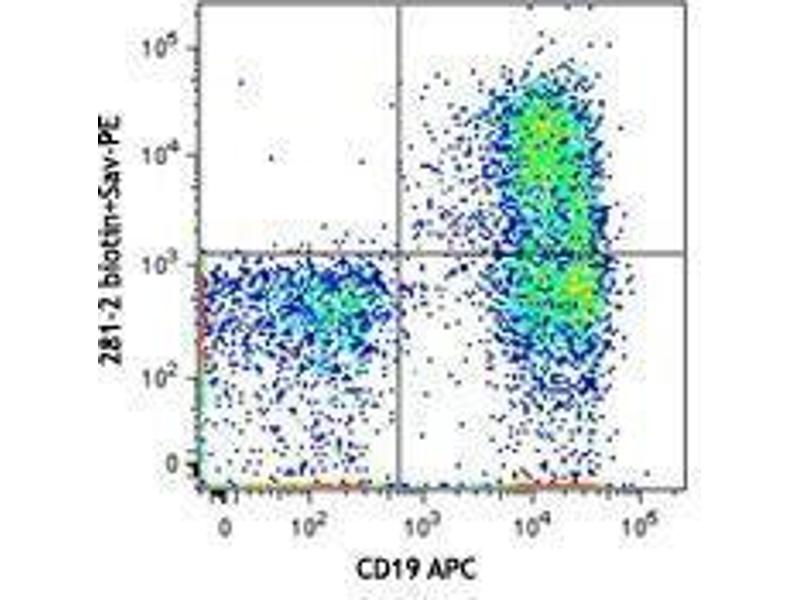 CD138, a member of the syndecan protein family, is a type I integral membrane heparin sulfate proteoglycan also known as Syndecan-1. Syndecan-1 participates in cell proliferation, cell migration, and cell matrix adhesion via interaction with collagen, fibronectin, and other soluble molecules (such as FGF-basic). It is expressed on normal and malignant plasma cells, pre-B cells, mesenchymal cells, epithelial cells, and endothelial cells.