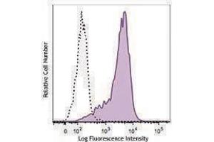 Programmed cell death 1 (PD-1), also known as CD279, is a 55 kD member of the immunoglobulin superfamily. CD279 contains the immunoreceptor tyrosine-based inhibitory motif (ITIM) in the cytoplasmic region and plays a key role in peripheral tolerance and autoimmune disease. CD279 is expressed predominantly on activated T cells, B cells, and myeloid cells. PD-L1 (B7-H1) and PD-L2 (B7-DC) are ligands of CD279 (PD-1) and are members of the B7 gene family. Evidence suggests overlapping functions for these two PD-1 ligands and their constitutive expression on some normal tissues and upregulation on activated antigen-presenting cells. Interaction of CD279 ligands results in inhibition of T cell proliferation and cytokine secretion.