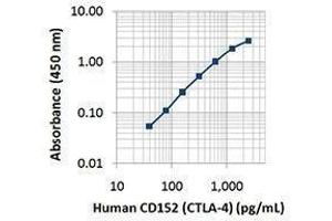 CD152, also known as Cytotoxic T-Lymphocyte Antigen 4 (CTLA-4), is a 33 kD member of the immunoglobulin superfamily. It is transiently expressed on activated T cells. CTLA4 is expressed on the surface of helper T cells and transmits an inhibitory signal to T cells. Regulatory T cells express high levels of CTLA-4. CTLA-4 (CD152) is similar to CD28 in amino acid sequence, structure, and genomic organization. Whereas CD28 delivers a costimulatory signal in T cell activation, CTLA-4 negatively regulates cell-mediated immune responses through interaction with CD80 (B7-1) and CD86 (B7-2) present on antigen presenting cells (APC). CTLA-4 is thought to play a role in the induction and maintenance of immunological tolerance as well as the development of protective immunity and thymocyte regulation. Mutations in the CTLA-4 gene have been associated with various autoimmune diseases, such as systemic lupus erythematosus, insulin-dependent diabetes mellitus, and other autoimmune diseases. A transcript of the CTLA-4 gene that may represent a native soluble form of CTLA-4 (sCTLA-4) showed that eleven of twenty patients with autoimmune thyroid disease (ATD) had a high concentration of sCTLA-4, whereas only 1 of 30 apparently healthy volunteers contained measurable levels. sCTLA-4 immunoreactivity was inhibited by its binding to B7.1, suggesting that sCTLA-4 is a functional receptor. sCTLA4 also plays a role in the initial immune response to infection of immune cells by HIV, along with the CD-1 pathway and others.