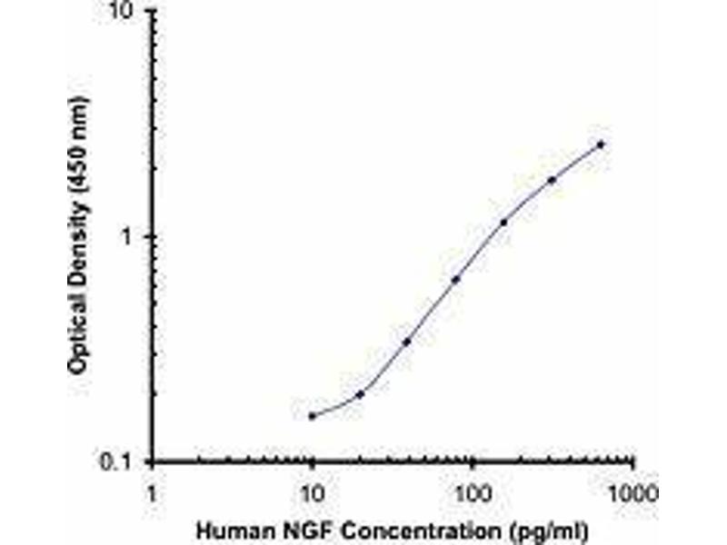 Nerve growth factor (NGF) is a small secreted protein that is important for the growth, maintenance, and survival of certain target neurons (nerve cells). NGF consists of three types of subunits, α, β and γ, which specifically interact to form a 7S, 130,000 Molecular weight complex. This complex contains two identical 118-amino acid β-chains, which are solely responsible for nerve growth stimulating activity of NGF. NGF is essential for the development and phenotypic maintenance of neurons in the peripheral nervous system (PNS) and for the functional integrity of cholinergic neurons in the central nervous system (CNS).