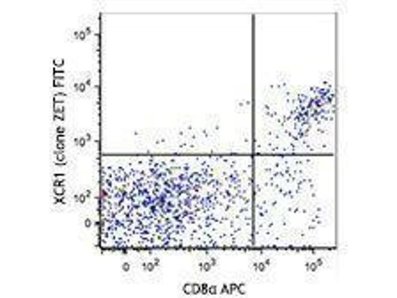 XCR1, also known as GPR5 or CCXCR1, is a 38 kD, G-protein coupled, seven transmembrane receptor, and the only member of the "C" chemokine receptor family. XCR1 mediates chemotaxis of XCL1 and XCL2 (lymphotactin-1 and -2), and defines a subset of CD8α+ conventional dendritic cells capable of antigen cross-presentation.