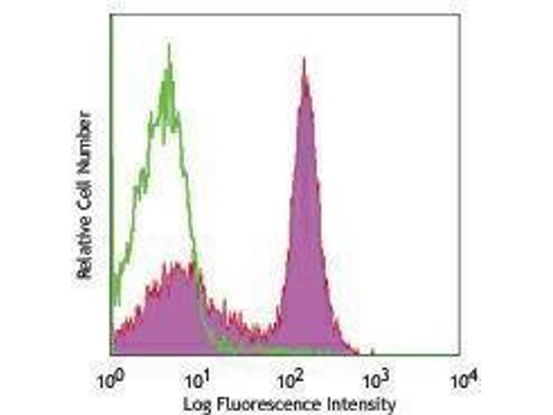 CD2, also known as LFA-2, is a member of the immunoglobulin gene family with an approximate molecular weight of 45 kD. It is expressed on thymocytes, peripheral T cells, dendritic epidermal T cells, macrophages in the spleen, and NK cells. CD2 can associate with the T cell receptor and participate in T cell activation through adhesion and signal transduction. CD2 binds to CD48, CD58, and CD59. The OX-34 antibody blocks CD48 binding to CD2. It has been reported to partially block T cell activation and inhibit the mixed lymphocyte reaction in vitro. The OX-34 antibody has also been used to deplete peripheral T cells and prevent allograft rejection in vivo.