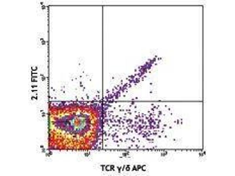 T cell receptor (TCR) is a heterodimer consisting of an α and β chain (TCR α/β) or a γ and δ chain (TCR γ/δ). TCR associates with CD3 to form a CD3/TCR complex. The CD3/TCR plays a key role in antigen recognition, signal transduction, and T cell activation. TCR Vγ1.1 (Garman nomenclature) is also called TCR Vγ1 (Tonegawa nomenclature). The Vγ1 gene almost exclusively rearranges to the Jγ4-Cγ 4 gene. Vγ1- Jγ4-Cγ4 expressing cells constitute a major population of γ/δ T cells in thymus and peripheral lymphoid organs in adult mice, but they are only composed of a minor population of γ/δ T cells during fetal and early postnatal life. Vγ1 T cell development can happen in thymus-dependent and thymus-independent manners. Further studies have shown that the antibody 2.11 recognized epitote is located in Cr4 domain.