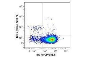 B-cell lymphoma 6 (Bcl-6), is an 80 kD homodimer, member of the BTB-POZ zinc finger family. It contains 1 BTB (POZ) domain and 6 C2H2-type zinc fingers. Bcl-6 is a transcriptional repressor, master regulator of germinal center reaction. On B cells, Bcl-6 induces proliferation, antibody class switch and affinity maturation, while inhibits its differentiation to plasma cells. On T cells, Bcl-6 induces its differentiation to TFH. This molecule is also expressed in some B cell lymphomas and breast cancer cells.