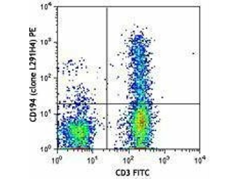 CD194, also known as CCR4, is a CC chemokine receptor. It binds CCL17 and CCL22 and is expressed on a subset of T and B cells, basophils, monocytes, and NK cells. Human Th2 cells are characterized by the expression of CCR4 and CCR8, and these receptors are regulated differently during Th2 development. Human peripheral blood Tregs can be divided into two distinct populations based on the expression of CCR4. Freshly isolated Tregs express CCR4 and presumably represent memory-type Tregs, and CCR4- Tregs require CD3-mediated activation to acquire a regulatory activity. Depletion of CCR4+ T cells leads to Th1-type polarization of CD4+ T cells and augmentation of CD8+ T cell responses to tumor antigens. CCR4 and its ligands are important for the recruitment of memory T cells into the skin in various cutaneous immune diseases.