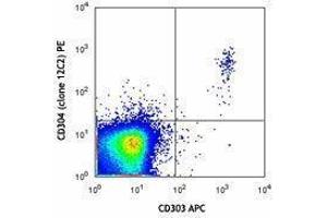 CD304, also known as neuropilin-1, BDCA-4 and VEGF165R, is a 140 kD type I transmembrane protein. Its extracellular region contains 2 CUB, 2 FV/FVIII, and one MAM domain, a soluble isoform is produced by alternative mRNA splicing. CD304 is involved in angiogenesis, neural development, and tumor metastasis. It's expressed by plasmacytoid dendritic cells, thymocytes, neurons, endothelium, and a subset of TFH cells. CD304 is also expressed in several carcinomas, and a high expression of this molecule in prostate cancer correlates with a poor prognosis.