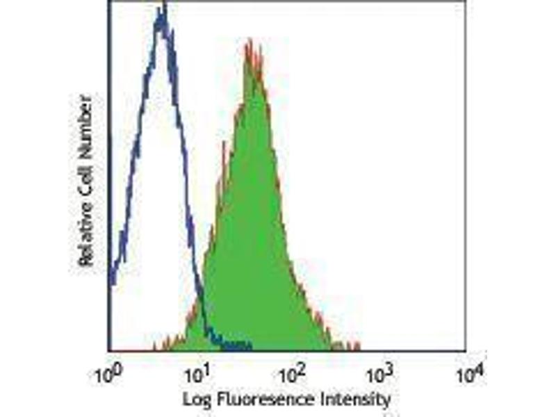 CD117 is a 145 kD protein tyrosine kinase also known as c-Kit. It is a receptor for stem cell factor or c-Kit ligand. CD117 is expressed on pluripotent hematopoietic progenitor cells (approximately 1-4 % bone marrow cells), mast cells, and acute myeloid leukemic cells (AML). CD117 binding of c-Kit ligand induces phosphorylation of CD117, and stimulates proliferation and survival of primitive hematopoietic stem cells as well as erythroid-committed and granulo-monocytic committed cells. The A3C6E2 antibody potently blocks the binding of SCF.