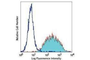 The 16A1 monoclonal antibody recognizes human CD140a also known as the platelet-derived growth factor receptor, alpha polypeptide, PDGFR2, and PDGFRα. CD140a is a cell surface tyrosine kinase receptor for members of the platelet-derived growth factor family. The identity of the growth factor bound to the receptor determines whether the functional receptor is a homodimer or heterodimer composed of both PDGFR-α and -β. CD140a contains three immunoglobulin-like domains and a tyrosine kinase domain with a predicted molecular weight of approximately 123 kD. CD140a is widely expressed on a variety of mesenchymal-derived cells and has been implicated in the development of some tumors including basal cell carcinoma and gastric stromal cell tumors. Binding of A-chain containing PDGF molecules as well as protease-activated PDGF-C molecules can stimulate cell proliferation. CD140a has been shown to interact with a number of proteins including CRK, Grb2, Grb14, SHP2, and others as integrin β3, caveolin-1, and nexin sorting molecules. The PDGFRα is heavily phosphorylated on numerous tyrosine residues through both autophosphorylation and ligand-dependent processes. The 16A1 antibody has been shown to be useful for flow cytometric detection of CD140a.