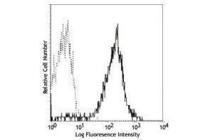 CD49d is a 150 kD α integrin chain known as α4 integrin or VLA-4 α chain. It forms a heterodimer with either integrin β1 (α4β1, VLA-4) or β7 (α4β7). CD49d is expressed broadly on T lymphocytes, B lymphocytes, monocytes, thymocytes, eosinophils, basophils, mast cells, NK cells, dendritic cells, and some non-hematopoietic cells, but not on normal red blood cells, platelets or neutrophils. VLA-4 binds to VCAM-1 (CD106) and fibronectin. α4β7 is the receptor for VCAM-1 and MAdCAM-1. CD49d participates in mononuclear cell trafficking to endothelial sites of inflammation and has roles in cell-cell interactions and cell adhesion to extracellular matrices. CD49d is involved in lymphocyte migration, T cell activation, and hematopoietic stem cell differentiation. CD49d is a marker to isolate pure populations of Treg cells due to its absence on Foxp3+ cells.