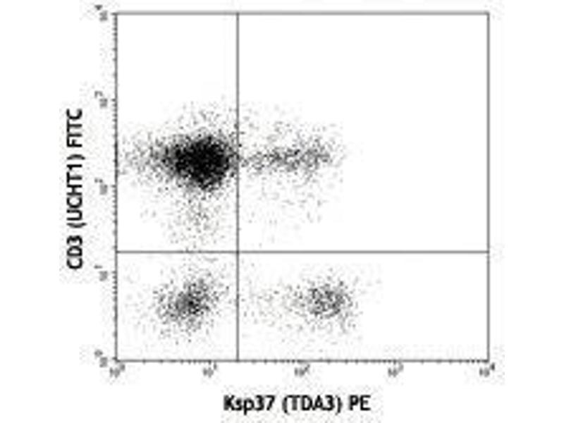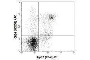 Ksp37 (killer-specific secretory protein of 37 kD), also known as FGFBP2 (FGF binding protein 2), is a 37 kD Th1-specific secretory protein. It is produced by NK cells, γ/δ T cells, a subset of effector CD8 T cells and Th1 cells, and secreted to serum. Most Ksp37 expressing cells coexpress perforin. It suggests that Ksp37 may be involved in an essential process of cytotoxic lymphocyte-mediated immunity. Elevated Ksp37 level in body fluids has been found in asthma and some infectious disease patients.