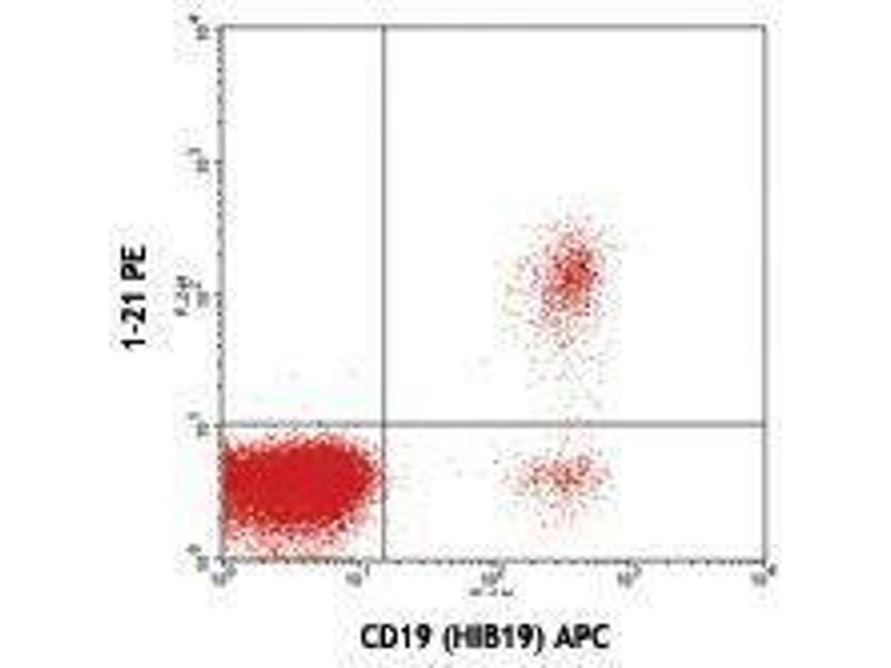 Der PE-konjugierte Maus Monoklonal anti-TCL1A Antikörper (Klon 1-21) (ABIN2663891) detektiert spezifisch TCL1A in FACS.