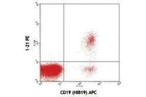 The antibody was purified by affinity chromatography, and conjugated with PE under optimal conditions. The solution is free of unconjugated PE and unconjugated antibody.