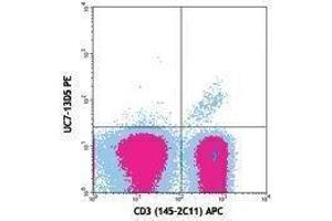 T cell receptor (TCR) is a heterodimer consisting of an α and a β chain (TCR α/β) or a γ and a δ chain (TCR γ/δ). TCR γ/δ belongs to the immunoglobulin superfamily, involved in the recognition of certain bacterial and tumor antigens bound to MHC class I. The TCR γ/δ associates with CD3 and is expressed on a T cell subset found in the thymus, the intestinal epithelium, and the peripheral lymphoid tissues and peritoneum. Most γ/δ T cells are CD4-/CD8-, some are CD8+. T cells expressing the TCR γ/δ have been shown to play a role in oral tolerance, tumor-associated tolerance, and autoimmune disease. It has been reported that γ/δ T cells also play a principal role in antigen presentation. Immobilized UC7-13D5 antibody has been reported to activate TCR-γ/δ-bearing T cells in vitro, and to deplete peripheral TCR-γ/δ-bearing T cells in vivo.