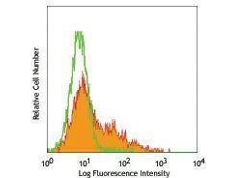 CD106 is a 110 kD glycosylphosphatidylinositol (GPI)-linked transmembrane protein, also known as VCAM-1 and INCAM-110. It is constitutively expressed on bone marrow stromal cells, myeloid progenitors, splenic dendritic cells, activated endothelial cells, as well as some lymphocytes. CD106 expression can be upregulated on endothelial cells by inflammatory cytokines. CD106 is involved in adhesion and acts as a counter-receptor for VLA-4 (α4/β1 integrin) and LPAM-1 (α4/β7 integrin). The 429 antibody has been reported to partially block VCAM-1-mediated binding.