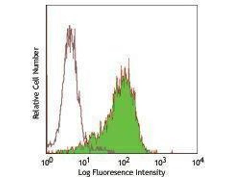 CD117 is a 145 kD protein tyrosine kinase also known as c-Kit. It is a receptor for stem cell factor or c-Kit ligand. CD117 is expressed on pluripotent hematopoietic progenitor cells (approximately 1-4 % bone marrow cells), mast cells, and acute myeloid leukemic cells (AML). CD117 binding of c-Kit ligand induces phosphorylation of CD117, and stimulates proliferation and survival of primitive hematopoietic stem cells as well as erythroid-committed and granulo-monocytic committed cells. The A3C6E2 antibody potently blocks the binding of SCF.
