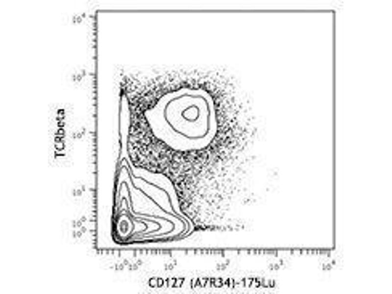 CD127 is a 60-90 kD type I transmembrane glycoprotein also known as IL-7 receptor α chain or IL-7Rα. It forms a heterodimer with the common γ chain (γc or CD132) which is shared with the receptors for IL-2, IL-4, IL-9, IL-13, IL-15, and IL-21. CD127 is expressed on immature B cells through early pre-B stage, thymocytes (except CD4/CD8 double positive thymocytes), peripheral T cells, and bone marrow stromal cells. CD127 has been reported to be an useful marker for identifying memory and effector T cells. The ligation of IL-7 with its receptor is important for stimulation of mature and immature T cells as well as immature B cells proliferation and development.