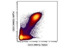 CD13 is a 150-170 kD type II transmembrane glycoprotein also known as aminopeptidase N, APN, and gp150. This zinc metallopeptidase as a homodimer is expressed on granulocytes, myeloid progenitors, endothelial cells, epithelial cells and subset of granular lymphoid cells. It is not expressed on platelets or erythrocytes. CD13 is thought to be involved in the metabolism of many regulatory peptides and functions in antigen processing and the cleavage of chemokines such as MIP-1. CD13 serves as the cellular receptor for Coronavirus.