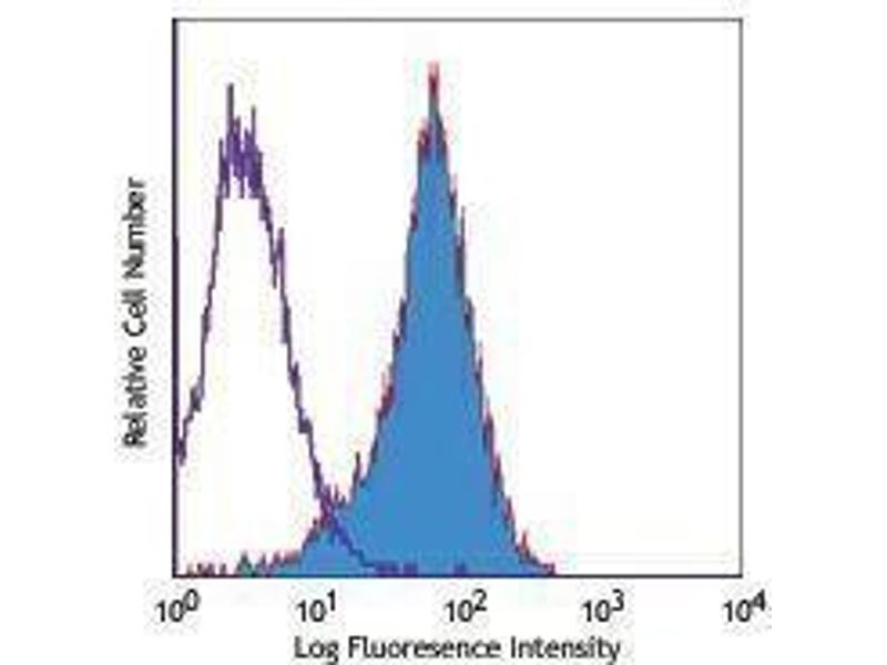 CD135 is a 130-160 kD type III tyrosine kinase receptor expressed on CD34+ hematopoietic stem cells, myelomonocytic progenitors, primitive B cell progenitors, and thymocytes. CD135 is also expressed on malignant hematopoietic cells including AML, ALL and CML-BC. CD135, also known as FMS-like tyrosine kinase-3, FLT3, STK-1, and Flk-2, is a growth factor receptor that binds the FLT3 ligand to promote the growth and differentiation of primitive hematopoietic cells. The intracytoplasmic domain of CD135 is modified by phosphorylation and has been shown to interact with Grb2, SOCS1, VAV1, and Shc.