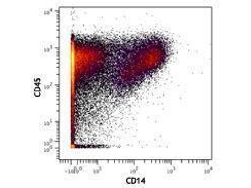 - CD14 is a 53-55 kD glycosylphosphatidylinositol (GPI)-linked membrane glycoprotein also known as LPS receptor. CD14 is expressed at high levels on monocytes and macrophages, and at lower levels on granulocytes. Some dendritic cell populations such as interfollicular dendritic cells, reticular dendritic cells, and Langerhans cells have also been reported to express CD14. As a high-affinity receptor for LPS, CD14 is involved in the clearance of gram-negative pathogens, and in the upregulation of adhesion molecules and expression of cytokines in monocytes and neutrophils.