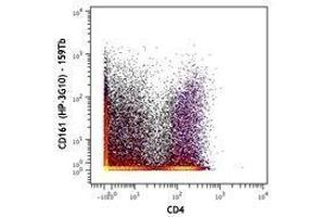 CD161 is a type II transmembrane glycoprotein, also known as NKR-P1A, that is expressed as a 40-44 kD homodimer. It is a member of the C-type lectin superfamily. CD161 is expressed on a majority of NK cells, NKT cells, and subsets of peripheral T cells and CD3+ thymocytes. It has been reported that Th17 cells are a subpopulation of CD4+CD161+CCR6+ cells. While the biological function of CD161 is not clear, it has been suggested to serve either as a stimulatory receptor or to inhibit NK cell-mediated cytotoxicity and cytokine production. LLT-1 (lectin-like transcript-1, also named as osteoclast inhibitory lectin or CLEC2D) is the ligand of CD161.