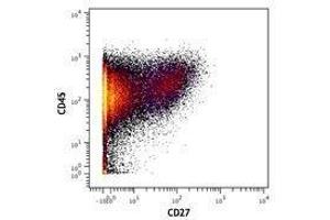 - CD27 is a 50-55 kD type I membrane protein also known as S152 and T14. It is a lymphocyte-specific member of the TNF-receptor superfamily. CD27 is expressed on medullary thymocytes, virtually all mature T cells, some B cells, and NK cells. CD27 binds to CD70 and plays an important role in costimulation of T cell activation, and regulation of B cell differentiation and proliferation. The cytoplasmic domains of CD27 have also been shown to interact with TRAF2 and TRAF5 to elicit NF-κB and SAPK/JNK activation.