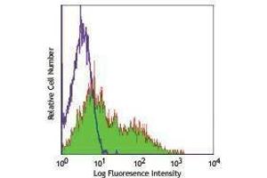 - CD43, also known as Ly-48, Leukosialin, Sialophorin, Leukocyte Sialoglycoprotein, and gp115, is a large single chain of type I transmembrane glycoprotein with abundant O-glycosylation and sialylation sites. Due to variable glycosylation and sialylation, two isoforms of CD43 have been identified. The 115 kD glycoform of CD43 is expressed on most hematopietic cells including T lymphocytes, NK cells, monocytes, granulocytes, platelets, and CD5+ B cells. It is not present on resting B cells and erythrocytes. While the 130 kD glycoform is thought to be activation-associated form primarily expressed on myeloid cells, pre-B cells, and activated T cells. It has been reported that CD43 binds to CD54 and Siglec-1. CD43 plays dual roles in cell adhesion and anti-adhesion, as well as costimulation of T cell activation and survival, and induction of apoptosis of T cells and hematopoietic progenitors. The 1B11 antibody reacts with the activation-associated glycoform of CD43. The epitope recognized by 1B11 is also shared with desialylated CD45RB. This antibody is useful for differentiation of effector CD8 T cells and memory T cells.