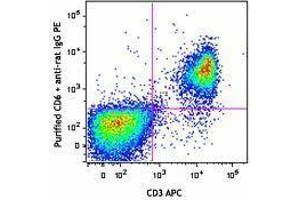 - CD6, a 100 kD monomeric T cell surface glycoprotein, is a member of the scavenger receptor cysteine-rich protein superfamily. It is expressed on mouse thymocytes and splenic T cells and neurons, but not on splenic B cells. CD6 has a long cytoplasmic tail in mice, with two proline-rich domains that interact with the -SH3 domain binding sequence. CD6 binding to its ligand, CD166 (ALCAM), serves as a costimulatory molecule through its interaction with SLP-76. CD6 mediated signaling may contribute to thymocyte survival and functional avidity in mice and men.