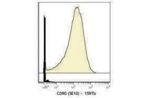 - CD90 is a 25-35 kD GPI-anchored protein, also known as Thy-1. It belongs to Ig superfamily. Human CD90 is expressed on neuronal cells, a subset of CD34+ cells, a subset of fetal liver cells and fetal thymocytes, fibroblasts, activated endothelial cells, and some leukemia cell lines. CD34+CD90+ cells are primitive hematopoietic stem cells. It has been reported that Thy-1 binds with β2 and β3 integrins and plays bimodal roles in the regulation of cell adhesion and neurite outgrowth, and inhibits hematopoietic stem cells proliferation and differentiation.