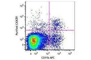CX3CR1 is a 40 kD, G-protein coupled receptor, with seven transmembrane regions. CX3CR1 is expressed by resident and alternatively activated macrophages (M2), a subset of monocytes, dendritic cells (DCs), NK cells, a subset of memory T cells, and mast cells. CX3CR1 is involved in cell recruitment during inflammation and participates in cell adhesion and extravasation from blood vessels. Its ligand is CX3CL1, also known as fractalkine or neurotactin. CX3CR1 is also a coreceptor for HIV1 and variations in this gene leads to increased susceptibility to HIV. In the brain, it is expressed by glial cells, which interact with CX3CL1 expressed by neurons.