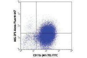 MIG, also known as mig-1, CXCL9, is a member of the alpha subfamily of inflammatory chemokine. It is inducible in macrophages, hepatocytes, and endothelial cells by IFN-γ, but not by TNF-α or bacterial lipopolysacchrides (LPS). Mig functions as a chemotactic factor for resting memory and activated T cells, both CD4+ and CD8+, and natural killer cells. Furthermore, it was reported that Mig induced both calcium signals and chemotaxis in activated B cells and that B cell activation induced expression of mouse CXCR3. MIG and CXCR3 may be important not only to recruit T cells to peripheral inflammatory sites, but also in some cases to maximize interactions among activated T cells, B cells, and dendritic cells within lymphoid organs to provide optimal humoral responses to pathogens.