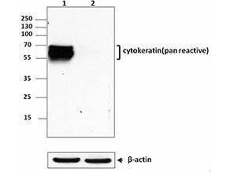 - Reacts with conserved epitope in all species tested. Recognizes cytokeratin 4, 5, 6, 8, 10, 13, and 18.