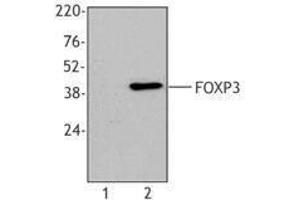- FOXP3 is a 50-55 kD transcription factor, also known as Forkhead box protein P3, Scurfin, JM2, or IPEX. It is proposed to be a master regulatory gene and more specific marker of T regulatory cells than most cell surface markers (such as CD4 and CD25). Transduced expression of FOXP3 in CD4+/CD25- cells has been shown to induce GITR, CD103, and CTLA4 and impart a T regulatory cell phenotype. FOXP3 is mutated in X-linked autoimmunity-allergic dysregulation syndrome (XLAAD or IPEX) in humans and in "scurfy" mice. Overexpression of FOXP3 has been shown to lead to a hypoactive immune state suggesting that this transcriptional factor is a central regulator of T cell activity. In human, unlike in mouse, two isoforms of FOXP3 have been reported: one (FOXP3) corresponding to the canonical full-length sequence, the other (FOXP3 δ2) lacking exon 2. The 150D monoclonal antibody reacts with human, mouse and rat FOXP3. The 150D antibody recognizes FOXP3 epitope encoded by exon 2.