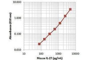 IL-27 is a heterodimeric cytokine consisting of EBV-induced gene-3 (EBI3, an IL-12 p40-related protein) and p28 (a newly discovered IL-12 P35-related protein). It is a member of the IL-6/IL-12 cytokine family and mainly produced by antigen-presenting cells, including macrophages and dendritic cells. IL-27 acts on T cells and NK cells. It has been reported that IL-27 drives rapid clonal expansion of naive CD4+ T cells, and promotes Th1 polarization and IFN-γ production in synergy with IL-12. The IL-27-induced Th1 differentiation was mediated by rapid and marked upregulation of ICAM-1/LFA-1 interaction in a STAT1-dependent manner. IL-27 exhibits anti-inflammatory function by enhancing Th1 cell differentiation, a potent antitumor activity, through CD8+ T cell and NK cell activation. It also plays a potential therapeutic role in autoimmune disease by inhibiting Th-17 development. IL-27 mediates its biological effects through its receptor, WSX-1/T cell cytokine receptor (TCCR), which is homologous to the IL-12Rβ2 subunit. Protein gp130 serves as a functional signal-transducing molecule for IL-27.