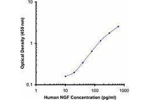 Nerve growth factor (NGF) is a small secreted protein that is important for the growth, maintenance, and survival of certain target neurons (nerve cells). NGF consists of three types of subunits, α, β and γ, which specifically interact to form a 7S, 130,000 Molecular weight complex. This complex contains two identical 118-amino acid β-chains, which are solely responsible for nerve growth stimulating activity of NGF. NGF is essential for the development and phenotypic maintenance of neurons in the peripheral nervous system (PNS) and for the functional integrity of cholinergic neurons in the central nervous system (CNS).