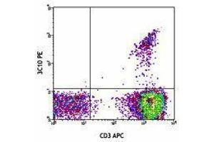 The 3C10 antibody recognizes the Vα7.2 T cell antigen receptor (TCR) α -chain segment which, joined with the Jα33 segment, constitutes an invariant TCR that is characteristics of the mucosal-associated invariant T cells (MAIT cells). MAIT cells are restricted by a nonpolymorphic class Ib major histocompatibility complex (MHC) molecule, MHC-related molecule 1 (MR1). MAIT cells are present in human blood (1-8 % of T cells), mesenteric lymph nodes, liver, and intestinal mucosa. MAIT cells play a role in detecting and fighting off microbial infections.