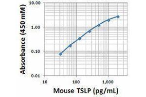 TSLP was initially identified in conditioned medium from a mouse thymic stromal cell line. Human and mouse TSLP are only 43 % identical at the amino acid level, and TSLP, like IL-7, exhibits species-specific functions and may function differently in humans and mice. TSLP binds to a heterodimeric receptor constituted by IL-7Ra and TSLPR. TSLPR has low affinity for TSLP, but in combination with IL-7Ra generates a high affinity binding site. TSLP has been associated with the development of allergic disorders in humans, such as asthma, atopic dermatitis, and food allergies. The susceptibility to allergic diseases has been associated to basophil induction by TSLP, and Th2 cytokine production induced by TSLP in mast cells. In addition, TSLP has been associated to the development of Tregs, and blocking TSLPR leads to delayed functional maturation of thymic Tregs. TSLPR has been detected in Tregs from allergic asthmatic patients. TSLP directly activates STAT5 in Tregs and suppresses its suppressive activities, additionally, it inhibits IL-10 production. Human TSLP induces the release of T cell-attracting chemokines (CCL17 and CCL22) from monocytes and enhances the T cell stimulatory capacity of the CD11c+ subset of dendritic cells. TSLP induces proliferation of naive T cells. In addition, it can drive Th2 differentiation via the induction of IL-4 production, and drives Th2 cytokine-mediated inflammation by acting on bone marrow-resident progenitors, which promotes basophil hematopoiesis. TSLP is upregulated in epithelial cells by IL-1α, TNFα, and Th2 cytokines.
